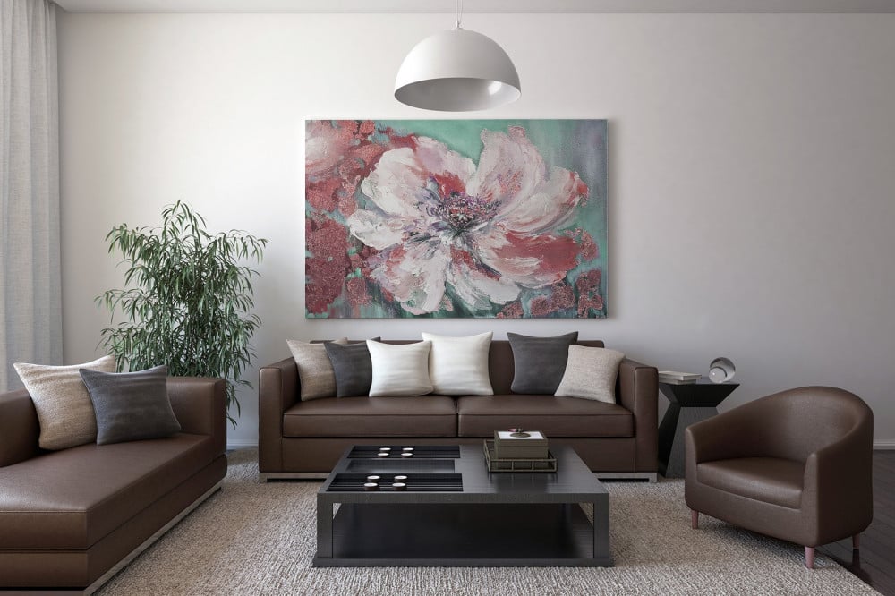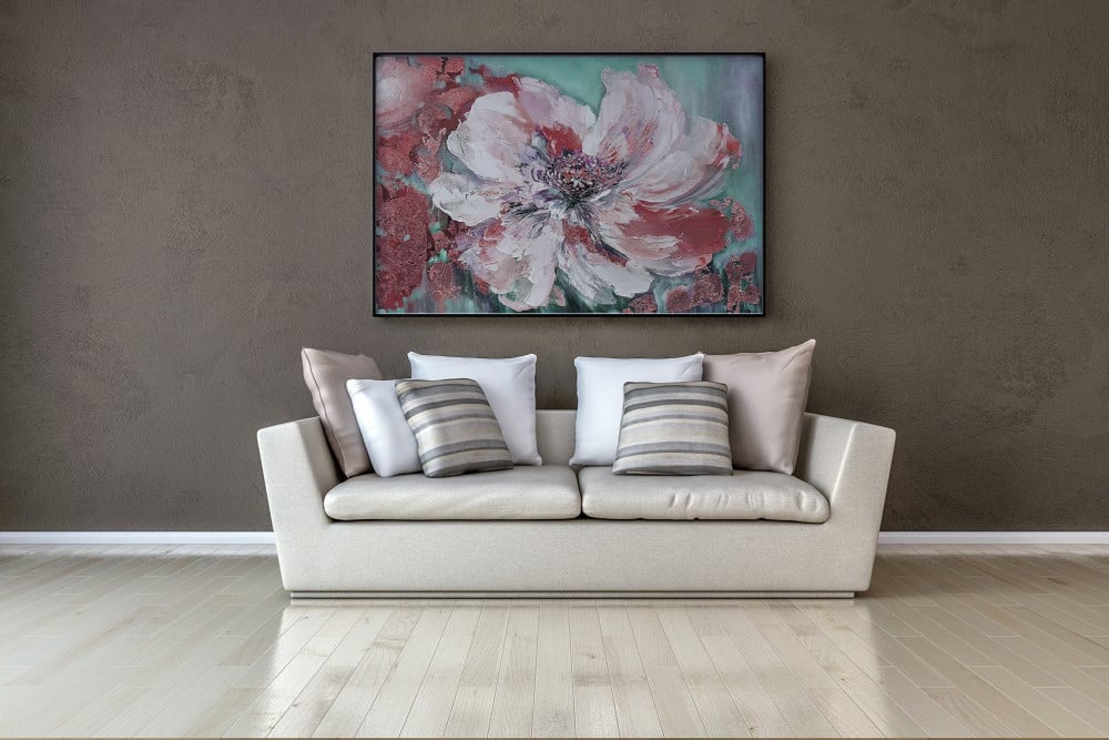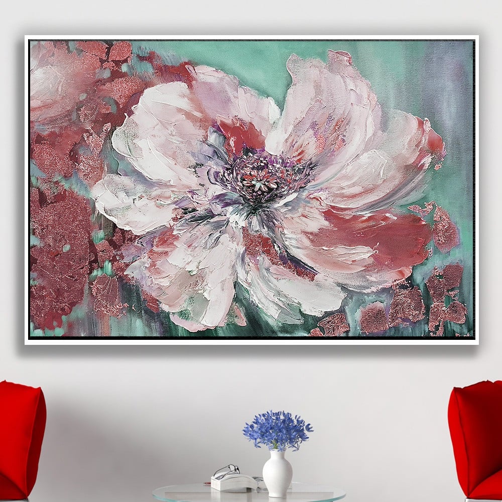 لوحة جدارية ورد انيقة بالفن التجريدي الجريء بدرجات الوردي والاخضر اكثر لوحة منعشة للجدار بالوانها المبهجة والحيوية تضيف لمسة فنية مميزة على الجدران ،ويمكن تغيير المقاسات والالوان حسب الطلب.